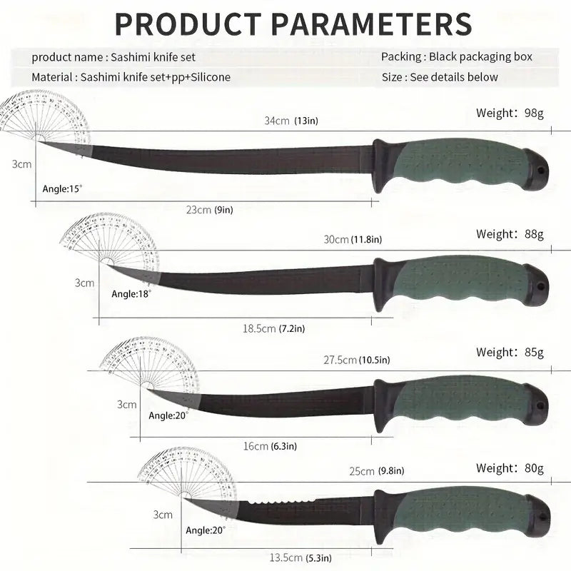 4-Piece Fish Fillet Knife Set with Sheath – Non-Stick Stainless Steel Blades & Soft Grip Handles