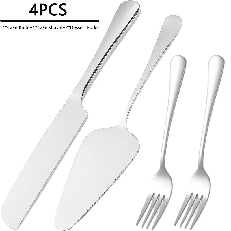 Serve your favorite cakes and desserts in style with this 4-piece stainless steel set, featuring a knife, forks, and a server. With its elegant mirror finish and dishwasher-safe design, it’s perfect for weddings, birthdays, Christmas, or any special occasion. Durable, stylish, and easy to clean, this set adds a touch of sophistication to every celebration.