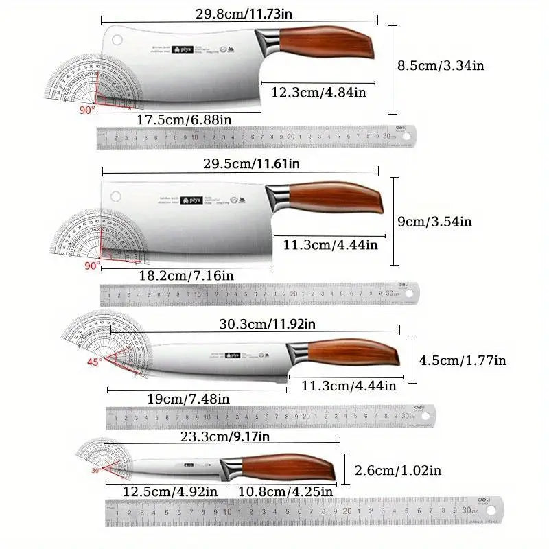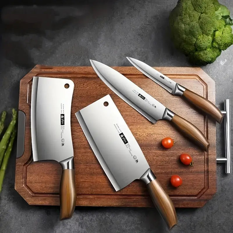 This 4-piece stainless steel kitchen knife set is designed for all your cooking needs. Featuring durable stainless steel blades, each knife offers precision and strength, while the imitation wood handles provide a comfortable, ergonomic grip. The set includes a versatile chef's knife, a sharp fruit knife, a meat cutter, and a bone cutting knife, making it perfect for slicing, chopping, and dicing with ease in your kitchen. Ideal for both beginners and professional chefs, this set is a must-have for any home cook.