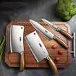 4-Piece Stainless Steel Kitchen Knife Set with Imitation Wood Handles – Chef's Knife, Fruit Knife, Meat Cutter, and Bone Cutting Knife