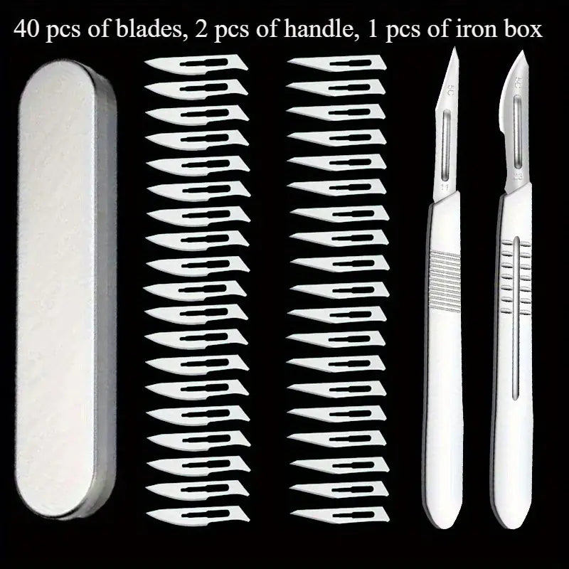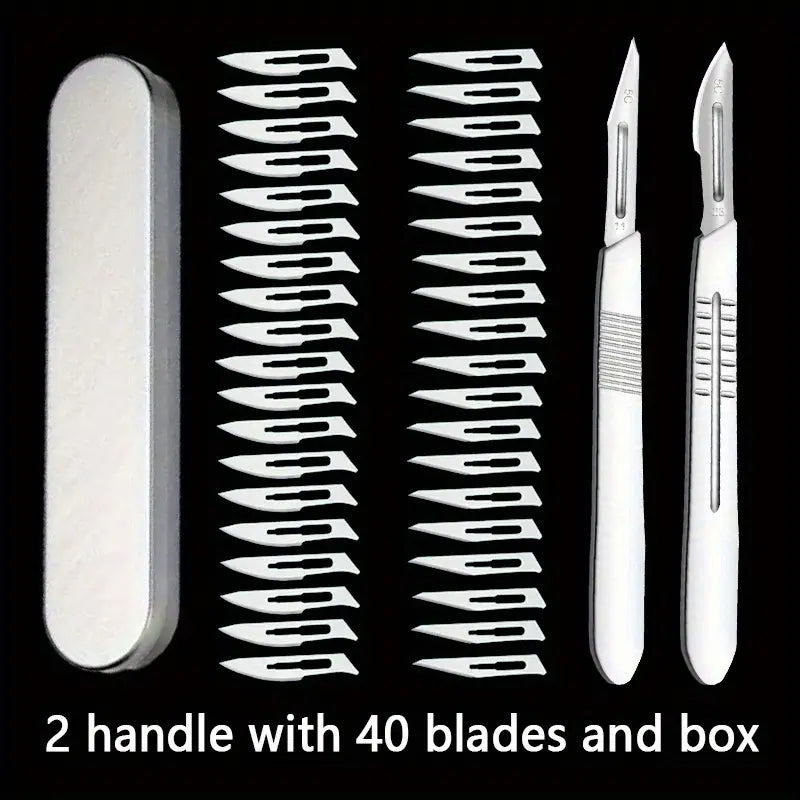 43pcs Craft Engraving Knife Set – 2 Handles, 40 Stainless Steel Blades with Storage Box for DIY, Paper Cutting, and Stationery Projects