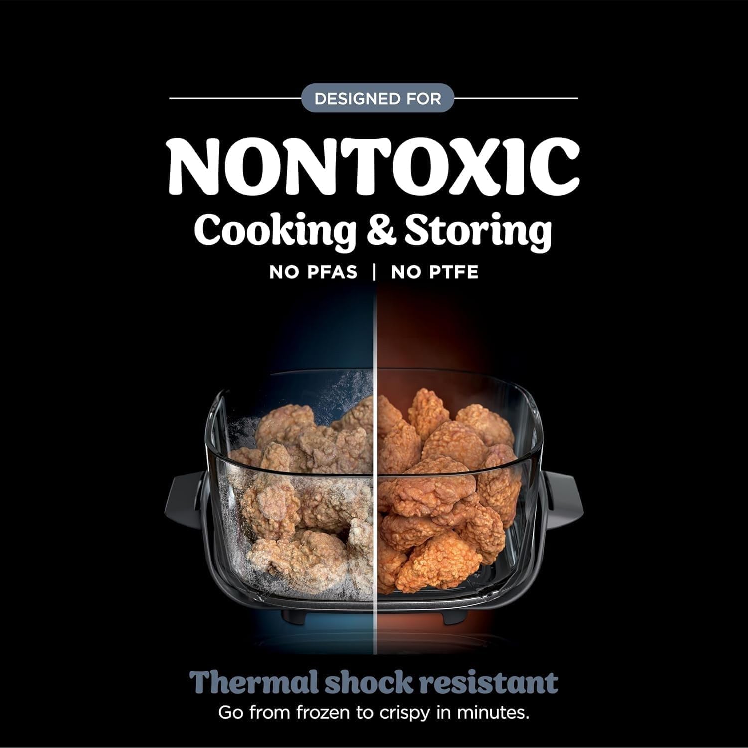5-in-1 Portable Glass Air Fryer Cooking System 1500W – 4 Quart Smart Air Fryer with Temperature Control, Automatic Shut-Off & Temp Ware Containers