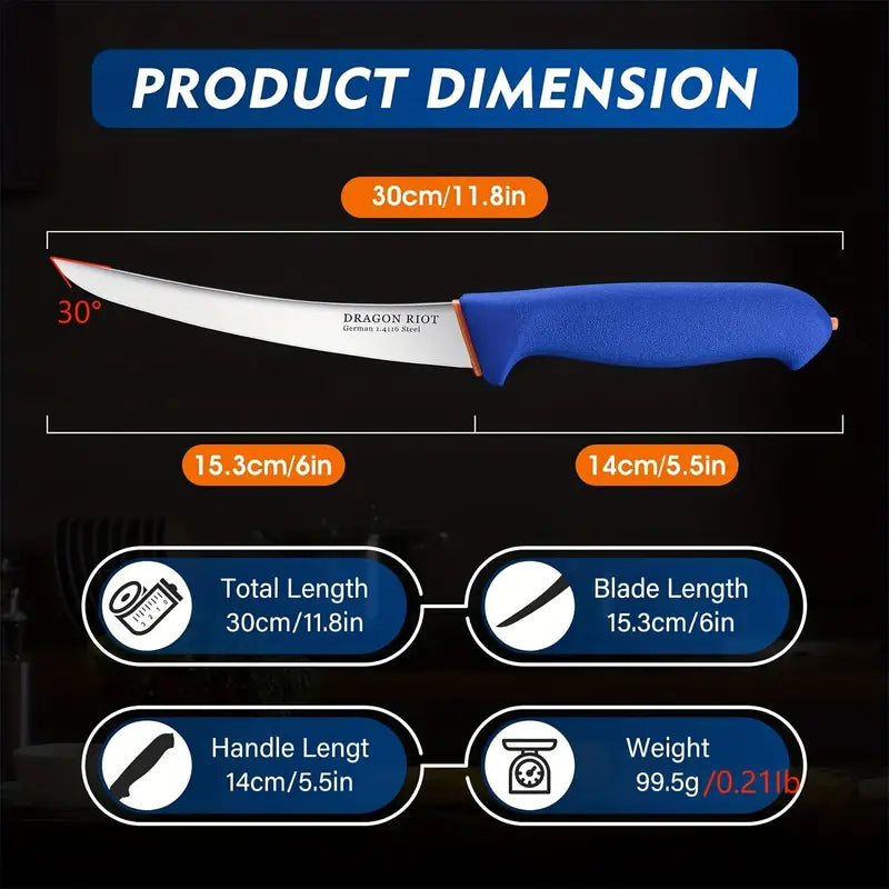 6" German Stainless Steel Boning Knife – Flexible Curved Blade for Meat & Fish