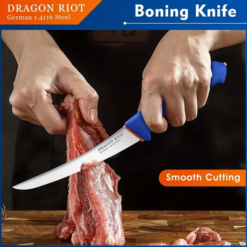 This professional 6-inch German stainless steel boning knife features a flexible, curved blade designed for precise meat trimming, brisket, and fish filleting. The ergonomic, non-slip handle ensures comfort and control, making it perfect for both home kitchens and professional butchers. Durable, sharp, and easy to handle, it’s an essential tool for effortless and efficient cutting.