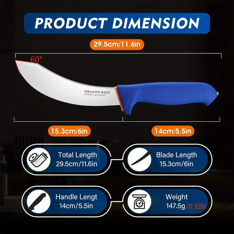 This 6-inch skinning knife is crafted from high-quality stainless steel, making it perfect for precise meat trimming and butcher processing. Its ergonomic design provides a secure grip, allowing for effortless skinning of beef and other meats, ensuring professional results every time. Ideal for butchers, chefs, and home cooks alike, this durable knife offers excellent sharpness and long-lasting performance.