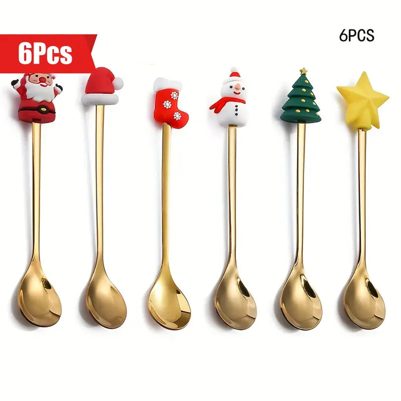 6pcs Christmas Coffee Spoon Set – Cute Doll Stainless Steel Spoons for Dessert, Espresso & Milkshake | Holiday Party & Cafe Use