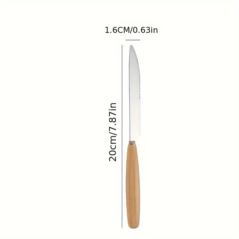 This 6-piece stainless steel knife set features elegant beech wood handles, perfect for steak, dinner, and general cutlery use. Designed for durability and precision, these knives are suitable for home kitchens, restaurants, and special occasions like Halloween, Christmas, and family gatherings. Dishwasher safe and crafted for comfort and style, this versatile set adds sophistication and practicality to any dining table.