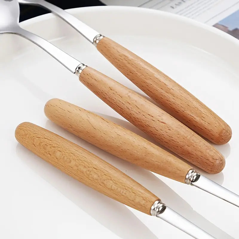 6pcs Stainless Steel Knife Set – Beech Wood Handle Steak & Cutlery Knives | Dishwasher Safe, Ideal for Western Dining, Home & Restaurant, Halloween & Christmas