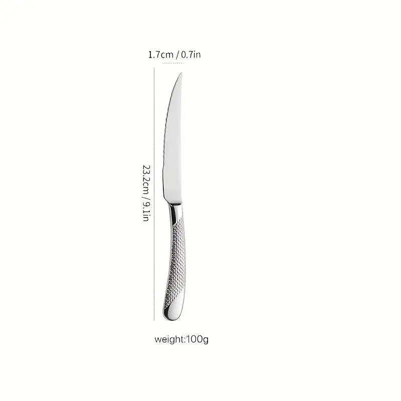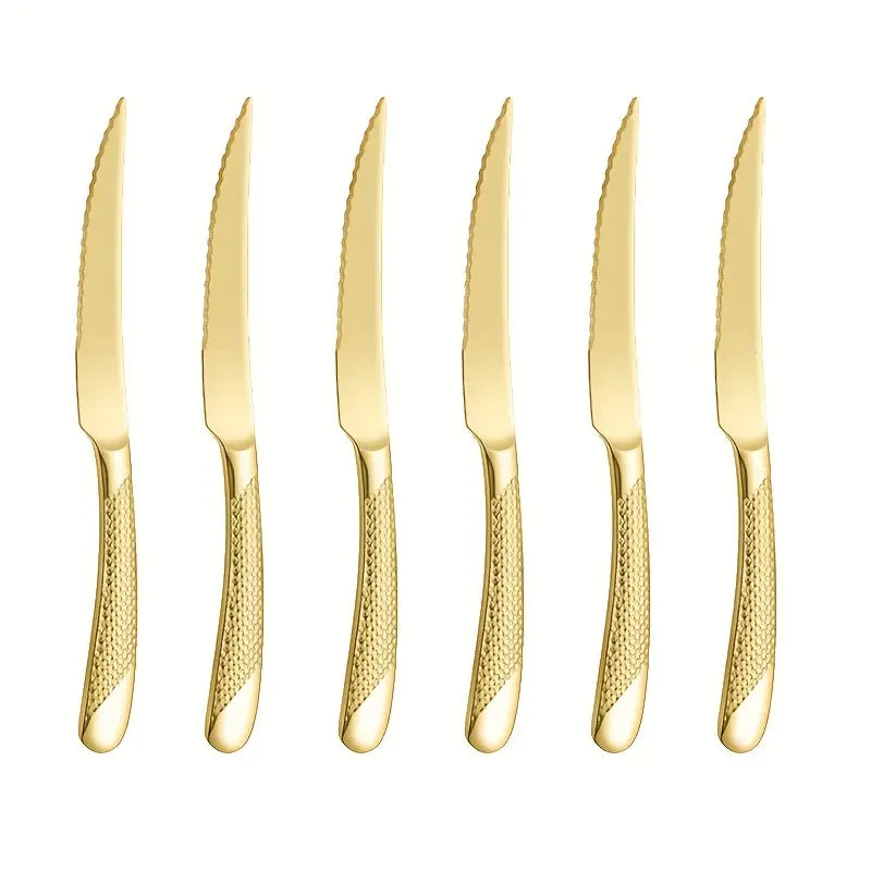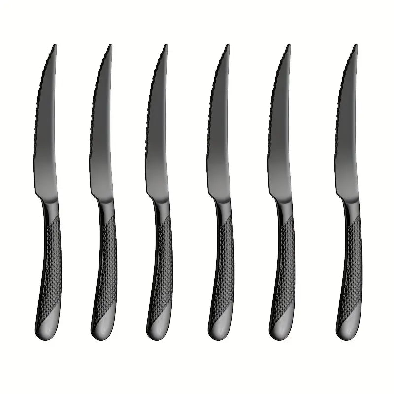 Serve meals in style with this 6pcs set of stainless steel star drill thread steak knives, designed for precision and durability. Thickened and crafted in a Western-style design, these knives are perfect for family gatherings, New Year celebrations, or restaurant use. Sharp, robust, and dishwasher safe, they combine functionality with elegance, making every meal a delightful experience.