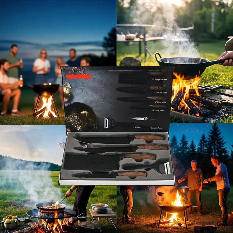 Upgrade your kitchen or outdoor cooking setup with this 6-piece ultra-sharp knife set. Featuring durable stainless steel blades and ergonomic non-slip handles, these knives are perfect for home cooking, camping, and barbecue parties. Each set comes in a stylish gift box, making it an ideal present for Father’s Day, birthdays, or culinary enthusiasts.