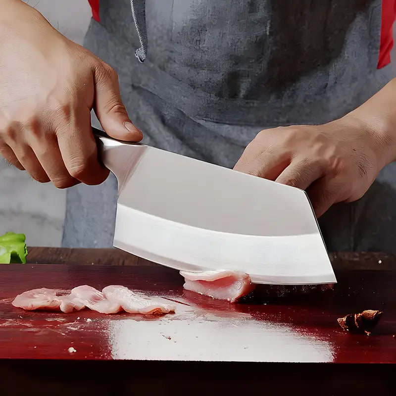 This 7-inch chef’s cleaver is a versatile kitchen essential, perfect for chopping vegetables, slicing meat, and preparing all your favorite meals. Made from superior stainless steel, it combines durability with precision, making it ideal for home cooks and professional chefs alike. Ergonomically designed for comfort and control, this cleaver ensures effortless cutting, dicing, and slicing in both home and restaurant kitchens.