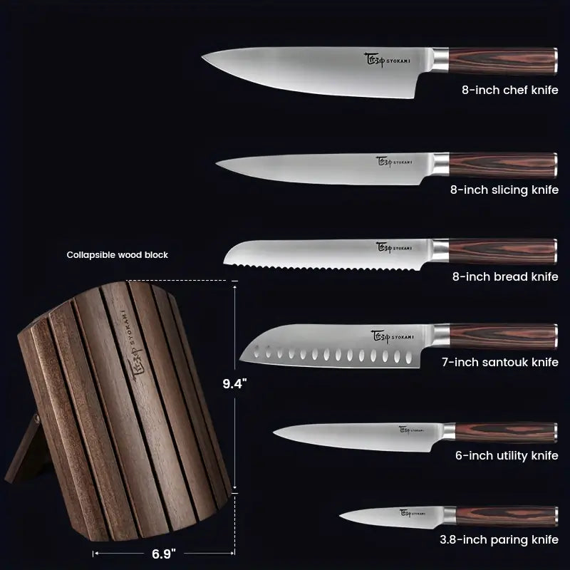 7-Piece Japanese Style Knife Set with Collapsible Block – High Carbon Steel Kitchen Knives