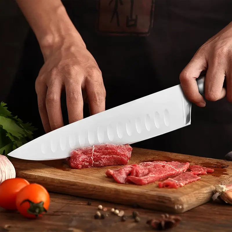 This 7-piece kitchen knife set includes all the essential knives for your cooking needs, featuring professional stainless steel blades designed for precision and durability. The set comes with a stylish wooden block for safe storage and easy access. Each knife is equipped with manual sharpening to maintain a sharp edge, making it the perfect gift for any home chef. Ideal for slicing, chopping, and dicing, this set is a must-have for your kitchen.