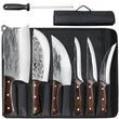 - 7-Piece Complete Knife Set: Includes Serbian-style chef knives, cleavers, and a sharpening rod.