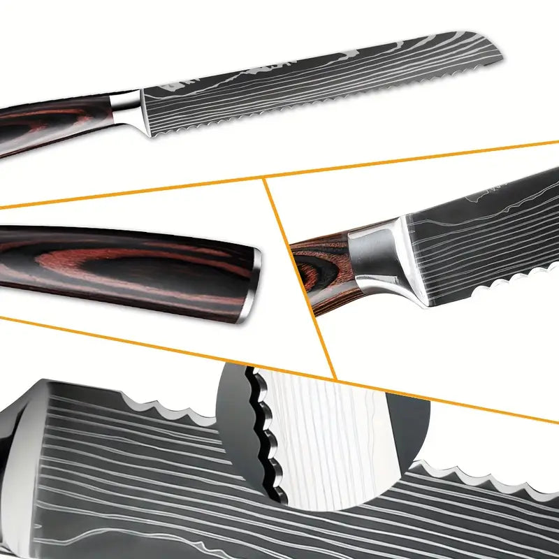 This 8-inch professional bread knife features a wave-edge serrated stainless steel blade that effortlessly slices through bread, toast, cake, and homemade sourdough without crushing. Designed with an ergonomic wooden handle for comfort and control, it comes in a premium gift box, making it ideal for bakers, home cooks, and gifting.