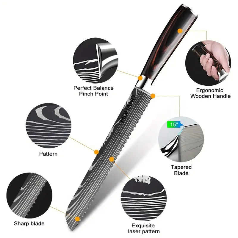 8 Inch Serrated Bread Knife – Professional Stainless Steel Bread Cutter with Wooden Handle & Gift Box