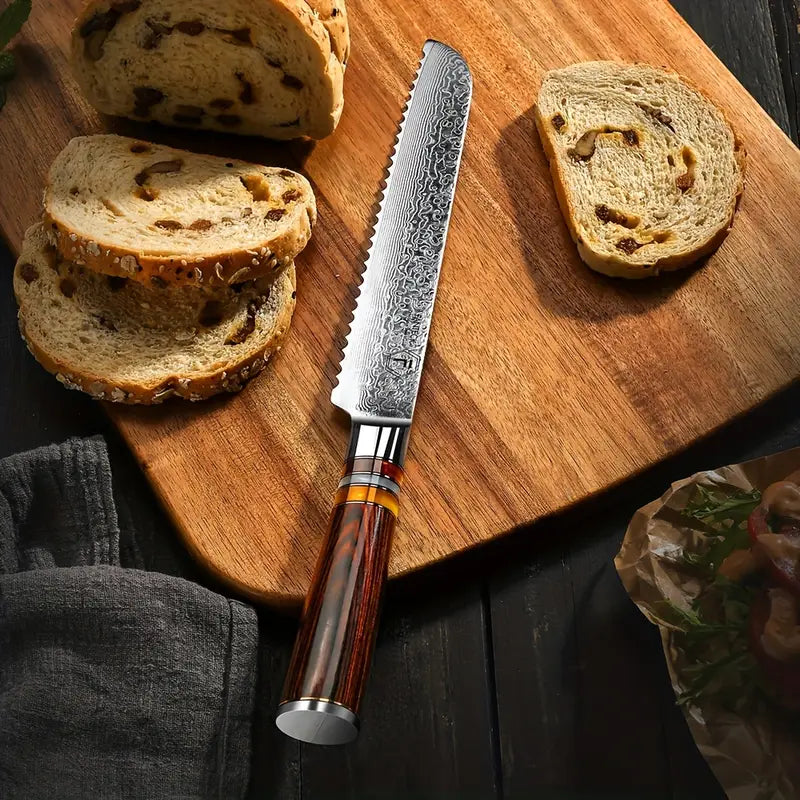 8 Inch VG10 Damascus Bread Knife – 67-Layer High Carbon Steel with Pakkawood Handle & Gift Box
