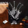 8-Piece Damascus Chef Knife Set with Block, Scissors & Sharpening Rods – Ergonomic Kitchen & Bar Tools