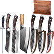 This 8-piece handmade stainless steel kitchen knife set features expertly forged, double-sided blades, designed for precision and durability. The set includes a butcher knife, utility knife, boning knife, cutting knife, and more, all housed in a sleek, wooden magnetic knife block for easy storage and display. Ideal for both home cooks and professional chefs, this multipurpose set offers exceptional cutting performance, and comes complete with a carbon steel knife sharpener to maintain the sharpness and longevity of each blade. Perfect for all your cooking needs.