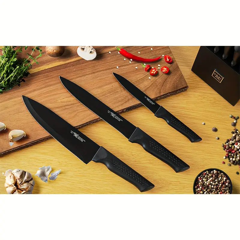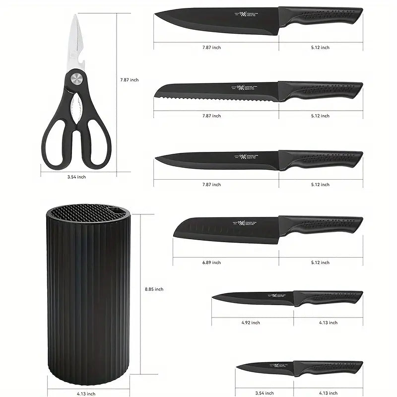 This 8-piece professional kitchen knife set features high-quality stainless steel blades that are super sharp, non-stick, and resistant to rust. The ergonomic design ensures comfort during use, making it perfect for both home and restaurant kitchens. The universal knife block keeps your knives organized and safe, providing a stylish and practical addition to your kitchen. Ideal for family restaurants or anyone looking to elevate their cooking experience.