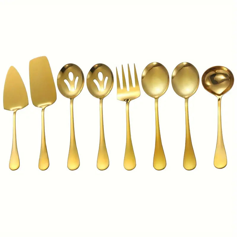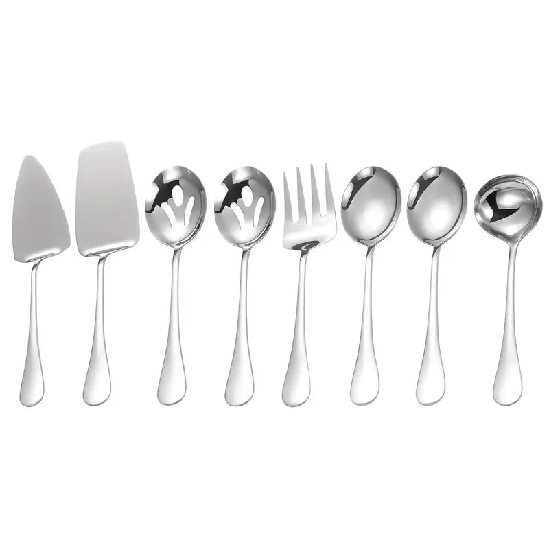 8-Piece Stainless Steel Serving Utensil Set – Spoon, Turner, Forks & Soup Ladle for Home & Restaurant