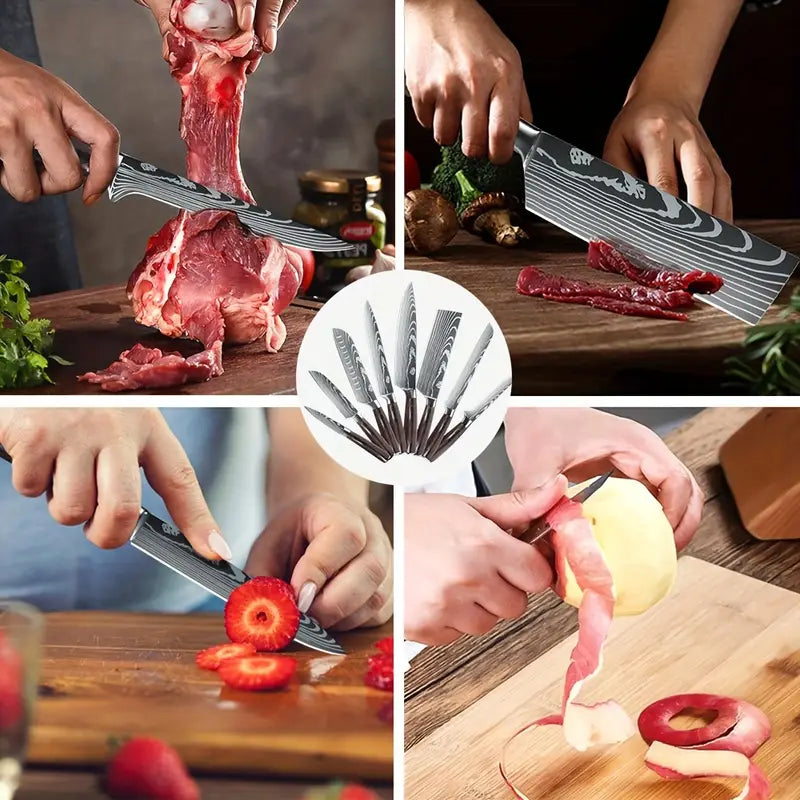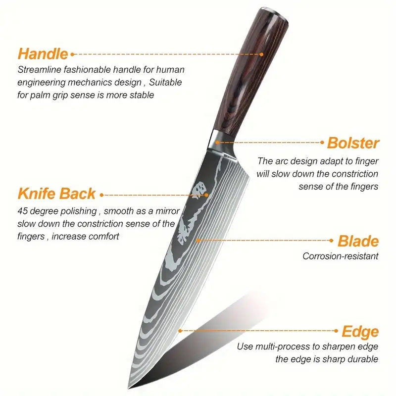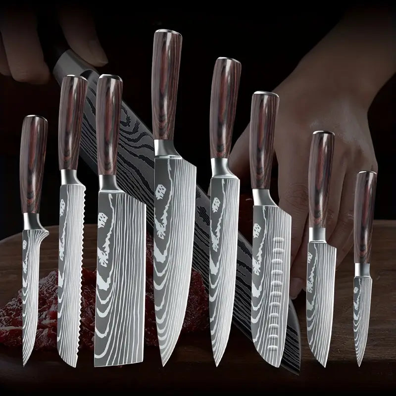 This 8-piece ultra-sharp kitchen knife set is crafted with high carbon stainless steel for precision cutting. Featuring ergonomic pakkawood handles, these knives are durable, comfortable to use, and offer a stylish touch to your kitchen. Ideal for both professional chefs and home cooks, this set comes neatly packaged in a gift box, making it a perfect gift for culinary enthusiasts.