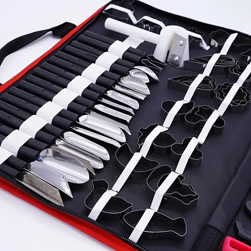 80-Piece Kitchen Carving Knife & Tool Set – Fork, Peeling, Cutting, and Shaping Tools with Carrying Bag