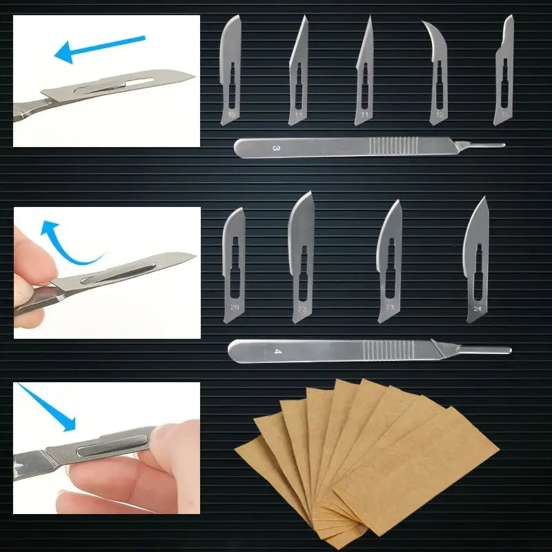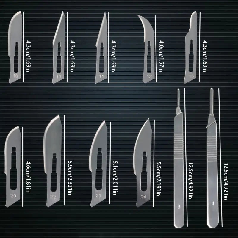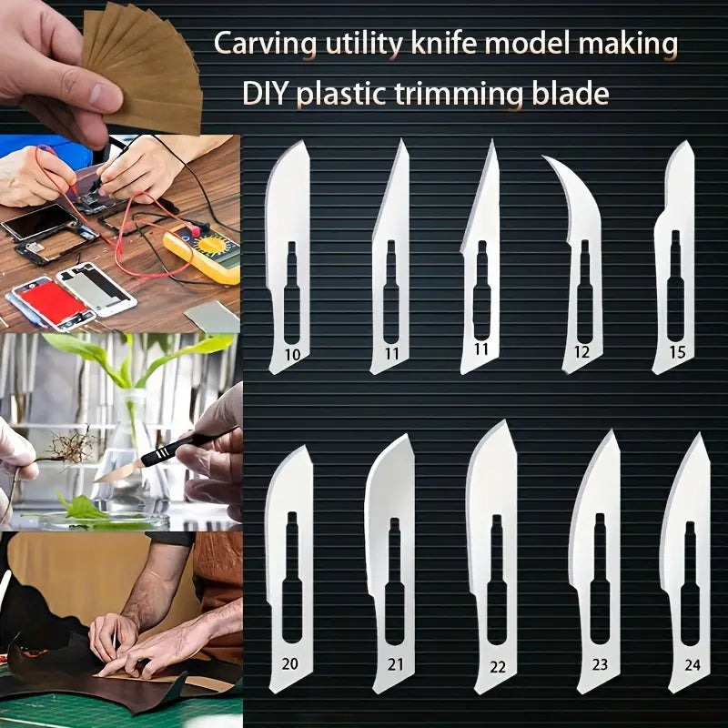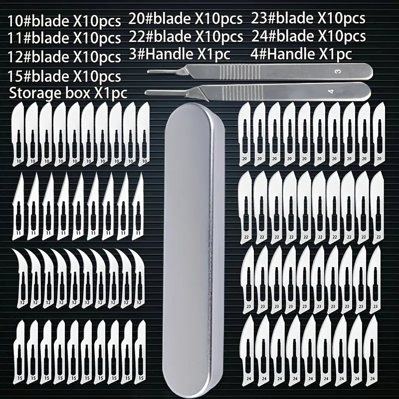 This 83-piece craft carving knife and blade set includes 2 ergonomic handles and 80 durable precision blades compatible with #10, #11, #12, #15, #20, #22, #23, and #24 types. Designed for versatility, it is ideal for plant trimming, grafting repairs, film application, DIY engraving, model making, artwork sculpture, and plastic edge finishing. Neatly stored in a portable storage box, this all-in-one set ensures convenience, accuracy, and reliability for hobbyists, crafters, and professionals.
