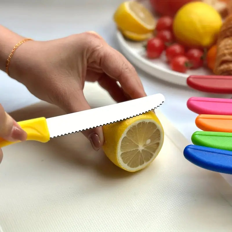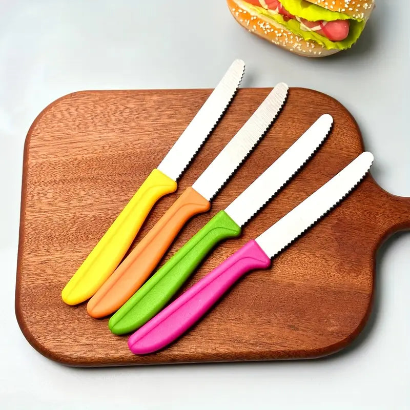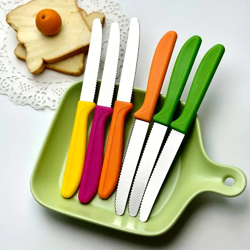 8pcs Colorful Stainless Steel Breakfast & Dessert Knife Set – Tomato, Cheese & Bread Slicers | Dishwasher Safe, Durable Cutlery for Family Meals & Western Cuisine