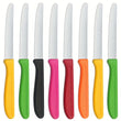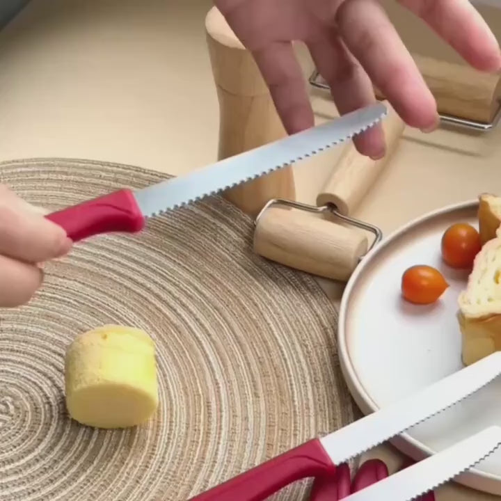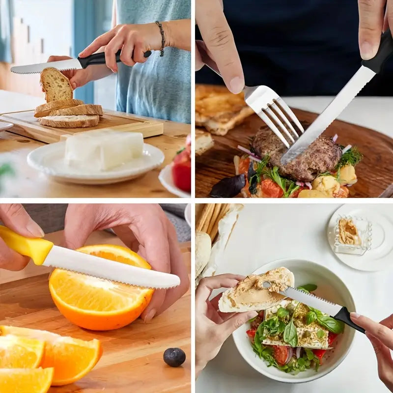 This 8-piece colorful stainless steel knife set is perfect for breakfast, desserts, and family meals, featuring tomato, cheese, and bread slicers. Crafted from durable stainless steel with vibrant handles, these knives provide precision cutting and long-lasting performance. Dishwasher safe and ideal for Western cuisine or gatherings, this versatile set adds style and convenience to any kitchen or dining table.