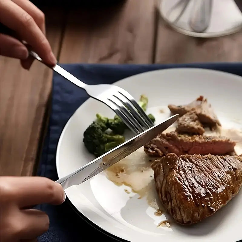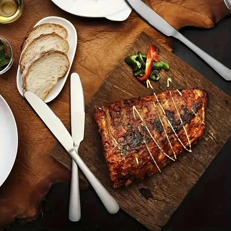 8pcs Silvery Stainless Steel Dinner Knife Set – Mirror Polished, Heavy Duty, Dishwasher Safe