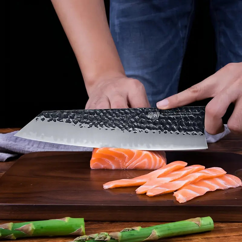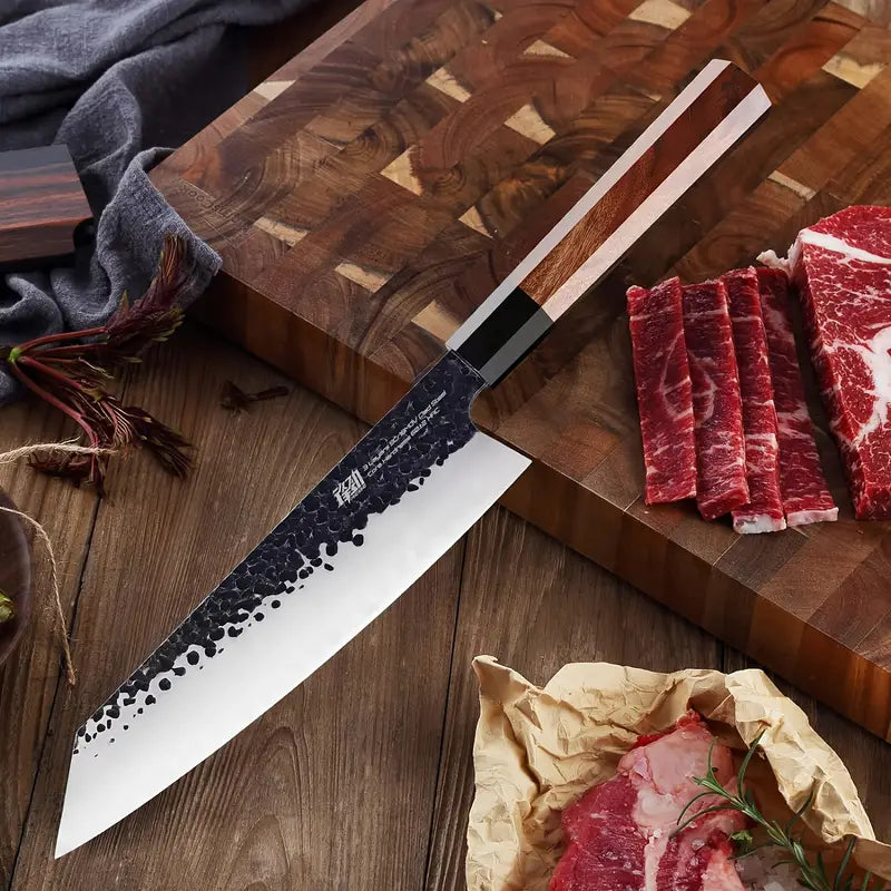 9-Inch Kiritsuke Chef Knife - Hand-Forged Japanese Triple-Layer Steel with Wooden Handle