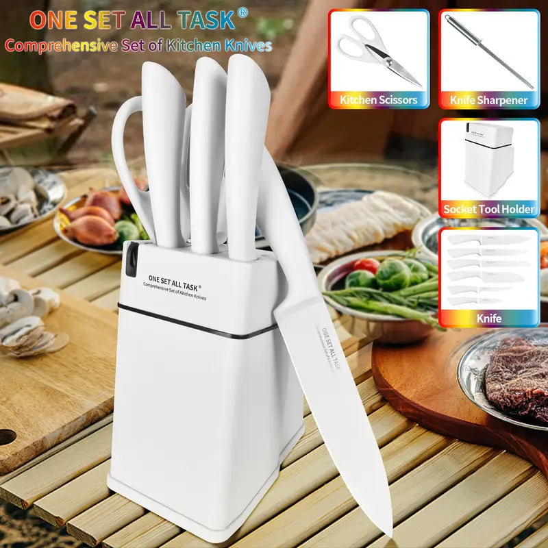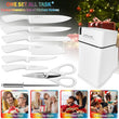 9-Piece High Carbon Stainless Steel Knife Set with Block & Built-in Sharpener – White