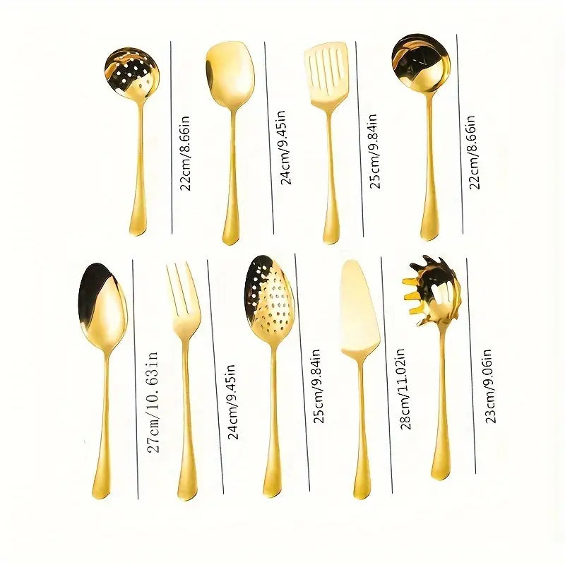 9-Piece Luxury Golden Stainless Steel Kitchen Utensil Set – Mirror-Polished Flatware for Home, Restaurant, Party, and Weddings