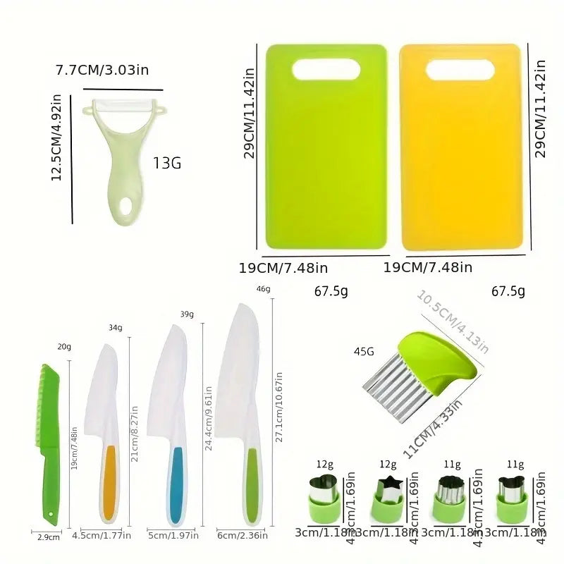 Upgrade your kitchen with this versatile knife set, featuring safety knives ideal for real cooking, serrated-edge tools for effortless slicing, plastic knives for everyday use, and specialized knives for fruits and potatoes. Designed for convenience and hygiene, each knife is dishwasher-safe and easy to clean, making meal prep faster, safer, and more enjoyable.