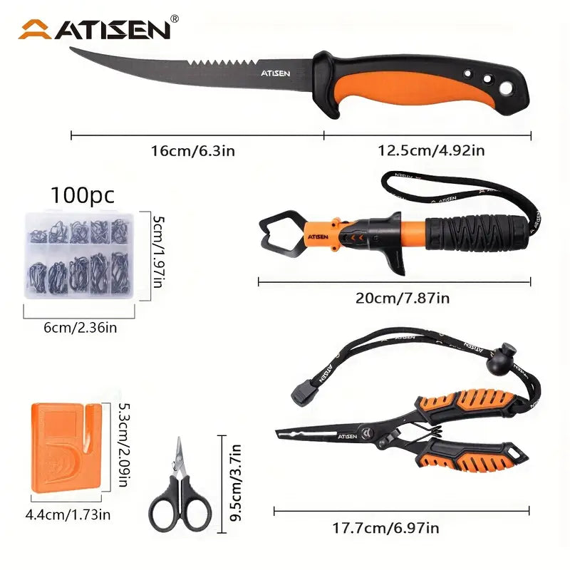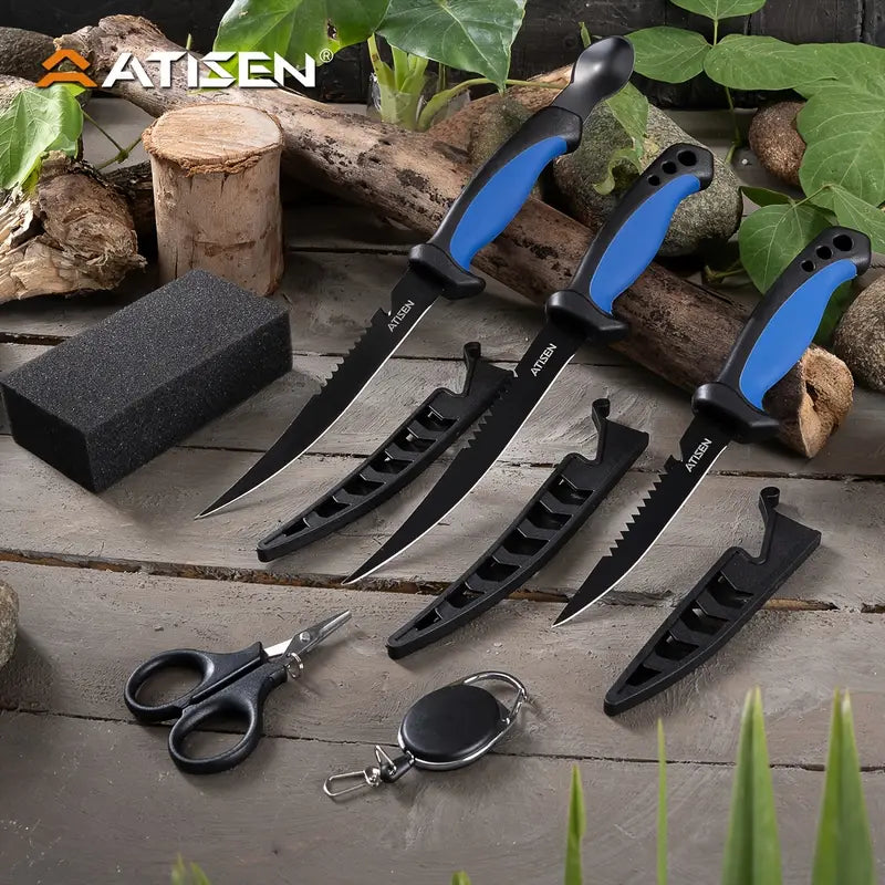Take your fishing game to the next level with the ATISEN Fishing Knife Set – the ultimate companion for fresh catch preparation!