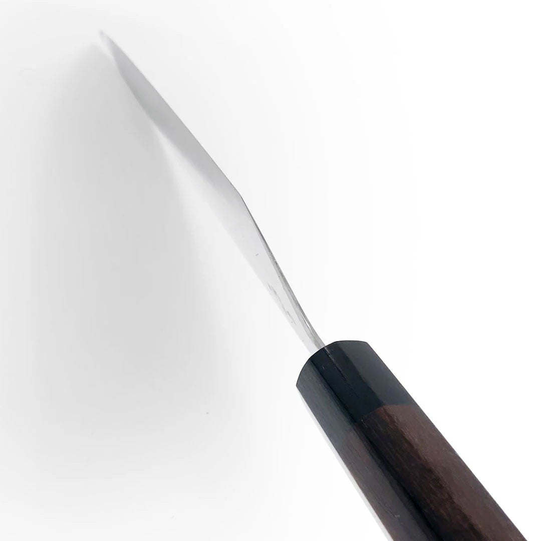 The Blue Steel 1 Suiboku Gyuto 240mm (9.4") Chef Knife features a 50mm wide heel height, offering exceptional precision and versatility for all your kitchen tasks. Crafted with premium Blue Steel 1 for superior edge retention and sharpness, this knife ensures effortless slicing, chopping, and dicing. The ergonomic ebony handle provides a comfortable grip and enhances the overall aesthetic, making it a perfect combination of functionality and style. Ideal for both professional chefs and cooking enthusiasts.