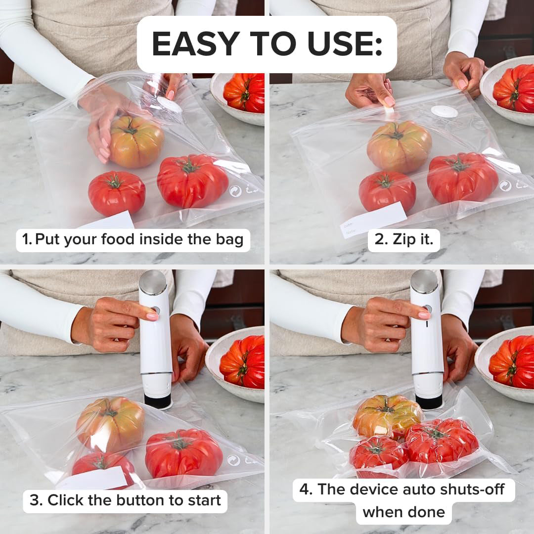 - Reusable Vacuum Bags Included: Comes with 10 eco-friendly reusable food storage bags, reducing single-use plastic waste.