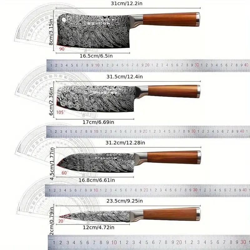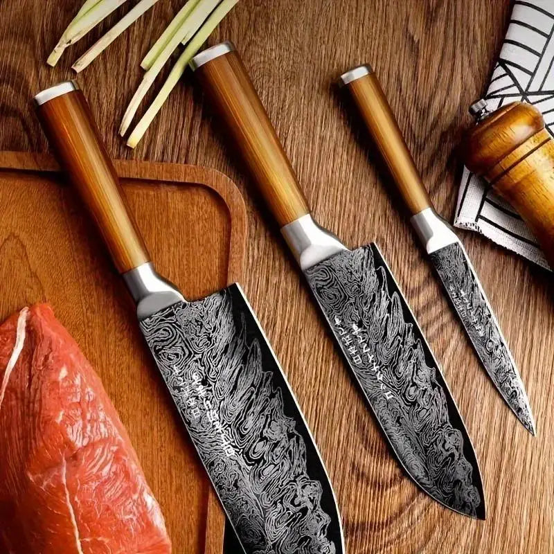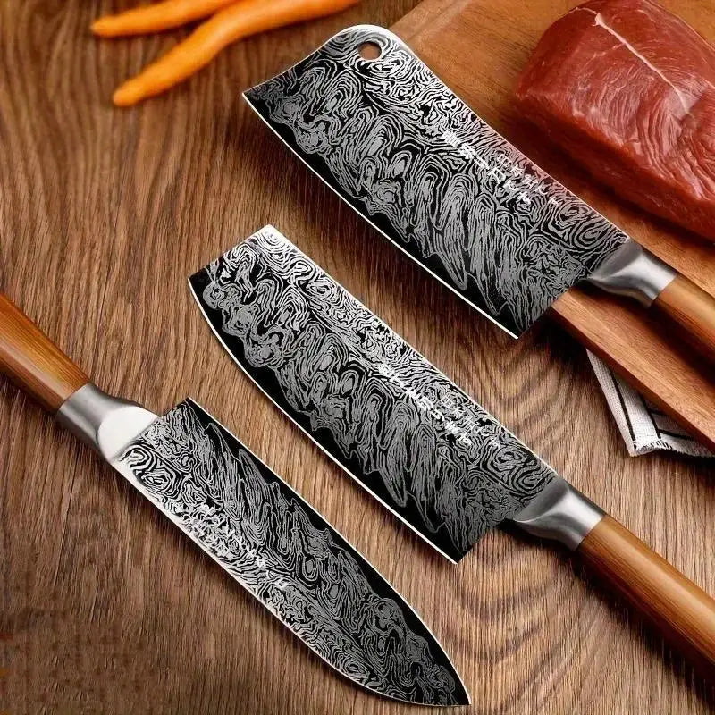 Damascus Steel Multi-Functional Kitchen Knife Set – Slicing, Bone Cutting & Fruit Knives