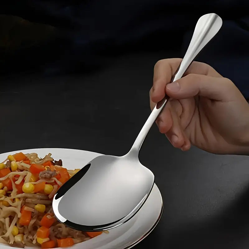 Upgrade your serving experience with this 4-piece set of extra-large stainless steel serving spoons. Crafted with a durable, thickened design and long, comfortable handles, these spoons are perfect for home kitchens, hotels, canteens, and restaurants.