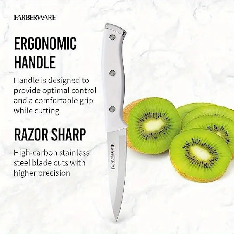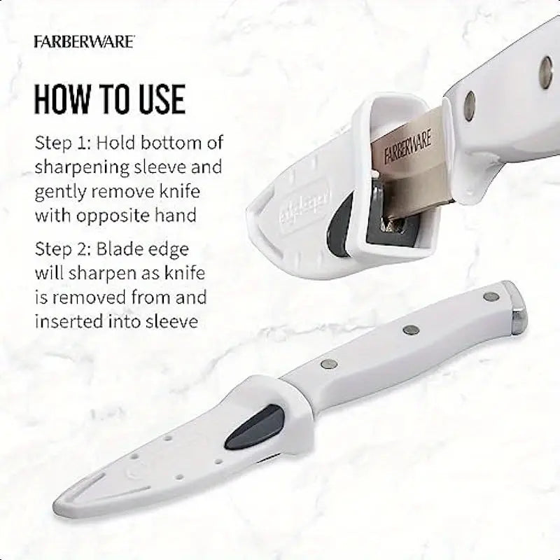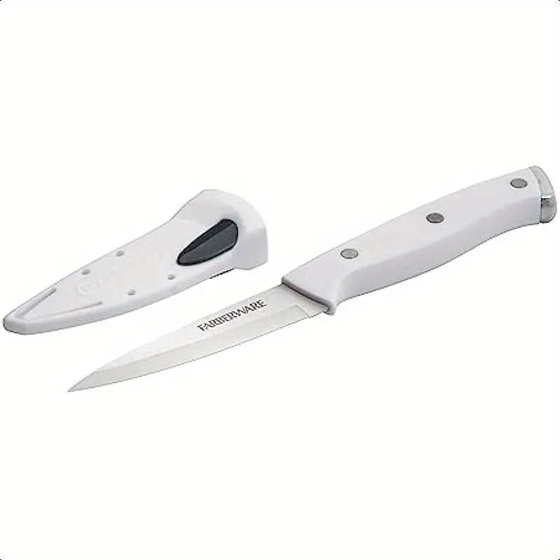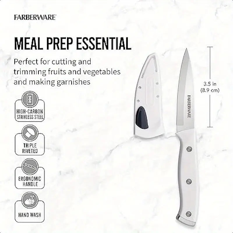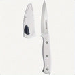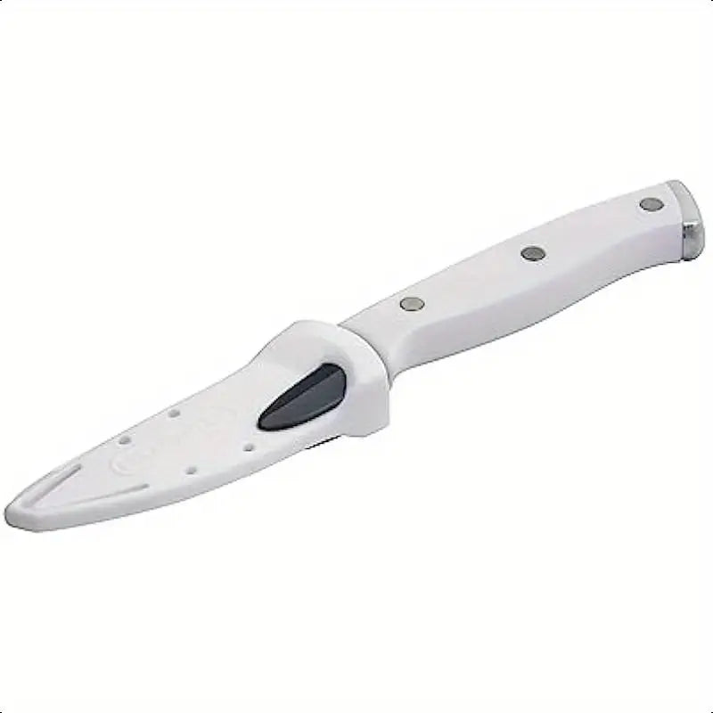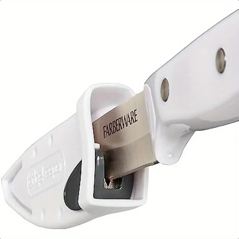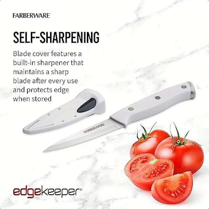 This Edgekeeper 3.5" Paring Knife features a high-carbon stainless steel razor-sharp blade that ensures precise peeling, slicing, and garnishing of fruits and vegetables. The self-sharpening sheath keeps the blade in top condition, while the ergonomic handle offers a secure, comfortable grip for effortless use. Its sleek white safety design adds a touch of elegance to your kitchen tools, making it a must-have for both professional chefs and home cooks alike.