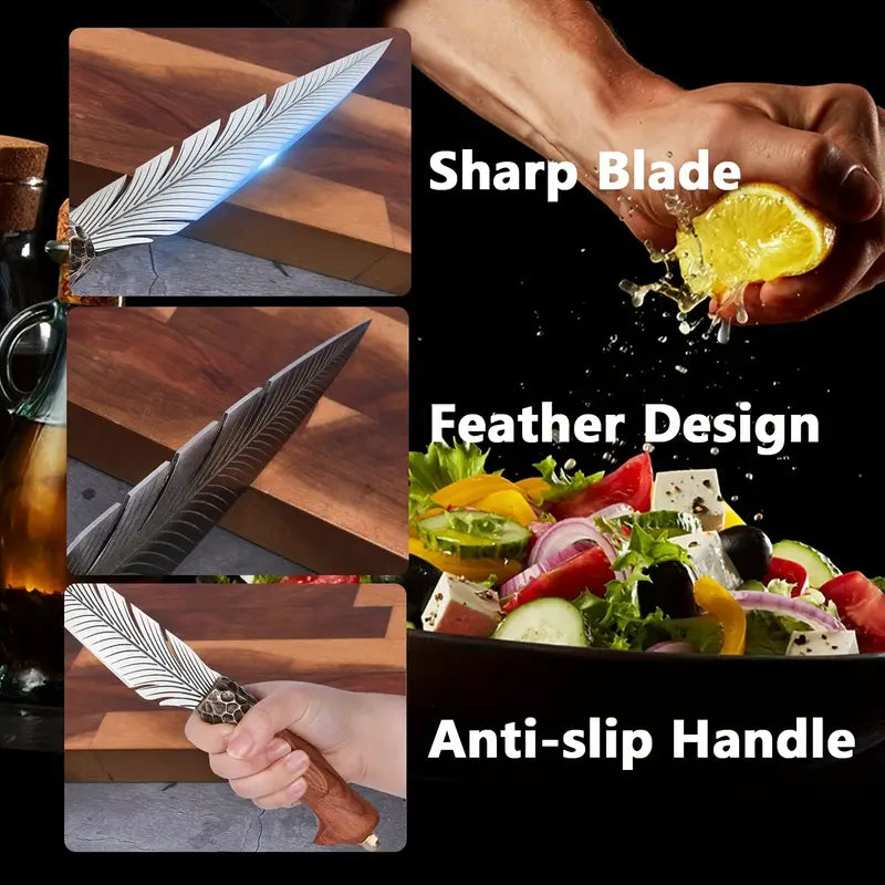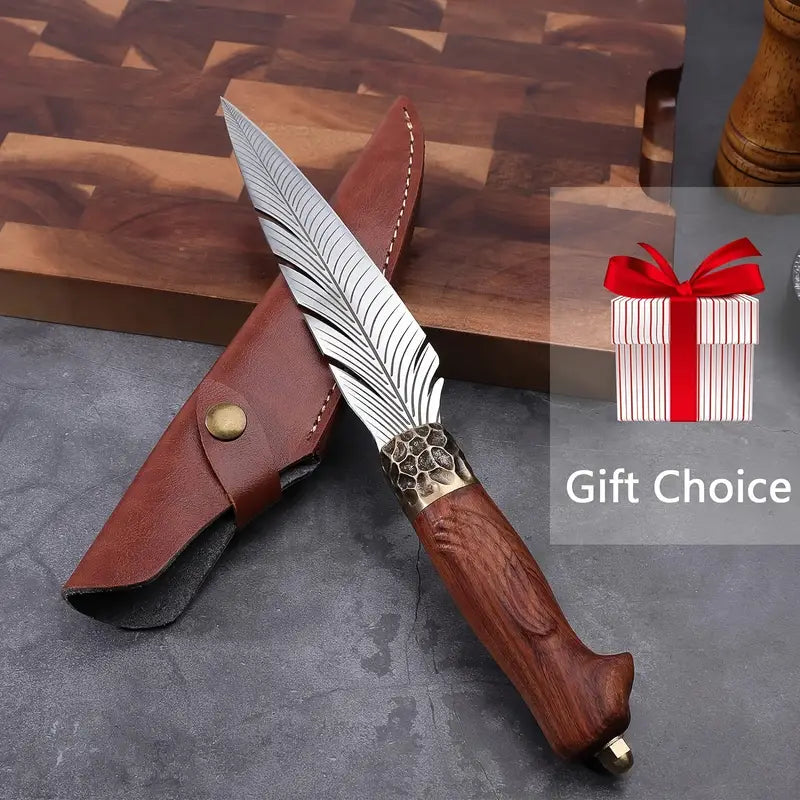 This handcrafted Feather Viking knife combines Japanese-forged precision with a versatile design for boning, chopping, and cleaving. Comes with a protective sheath, making it perfect for kitchen use, outdoor camping, BBQs, or as a premium gift for birthdays, Father’s Day, Thanksgiving, or Christmas.