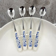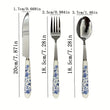Floral Blue & White Ceramic-Handled Stainless Steel Cutlery Set - 4-Piece Steak Knives, Forks, Spoons for Home & Restaurant Dining
