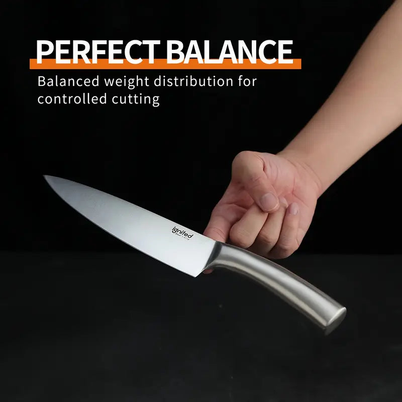 This German stainless steel chef knife is designed for precision slicing and carving, perfect for BBQs and culinary preparation. Featuring an ergonomic handle for comfort, a corrosion-resistant blade, and food contact-safe construction, it’s a durable and reliable tool for both professional chefs and home cooks. Ideal for metal kitchen utility tasks and slicing meat with ease.