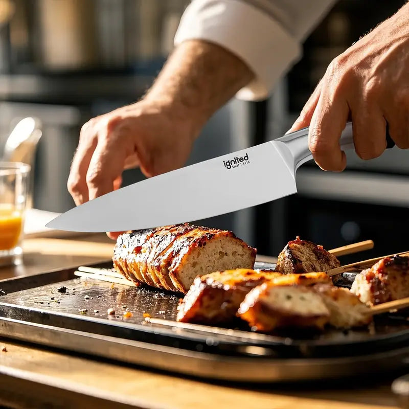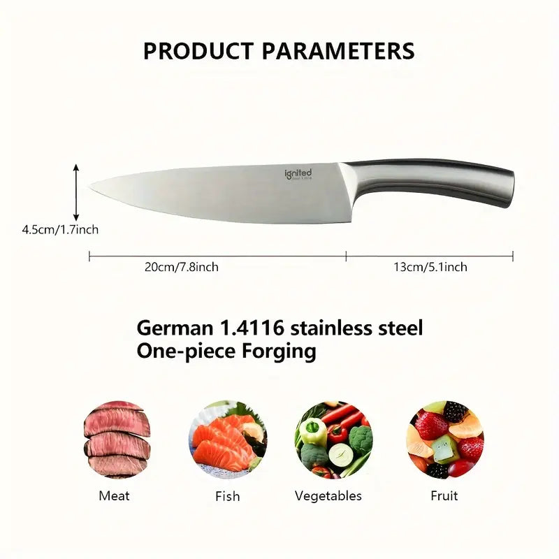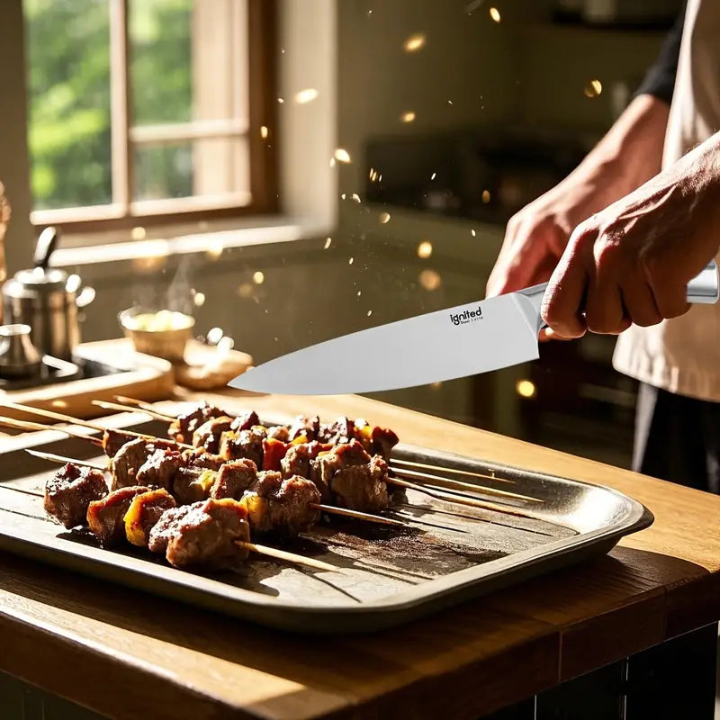 German Stainless Steel Chef Knife for BBQ – Ergonomic Handle & Precision Ground Blade for Culinary Preparation