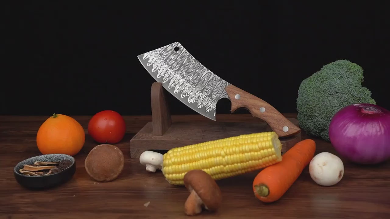 Hand-Forged Japanese Chef Knife – ATS-34 High Carbon Steel Meat Cleaver with Sheath & Engraved Handle