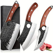 Hand-Forged Serbian Chef Knife Set – 3PCS Butcher, Cleaver & Boning Knives for Meat & BBQ