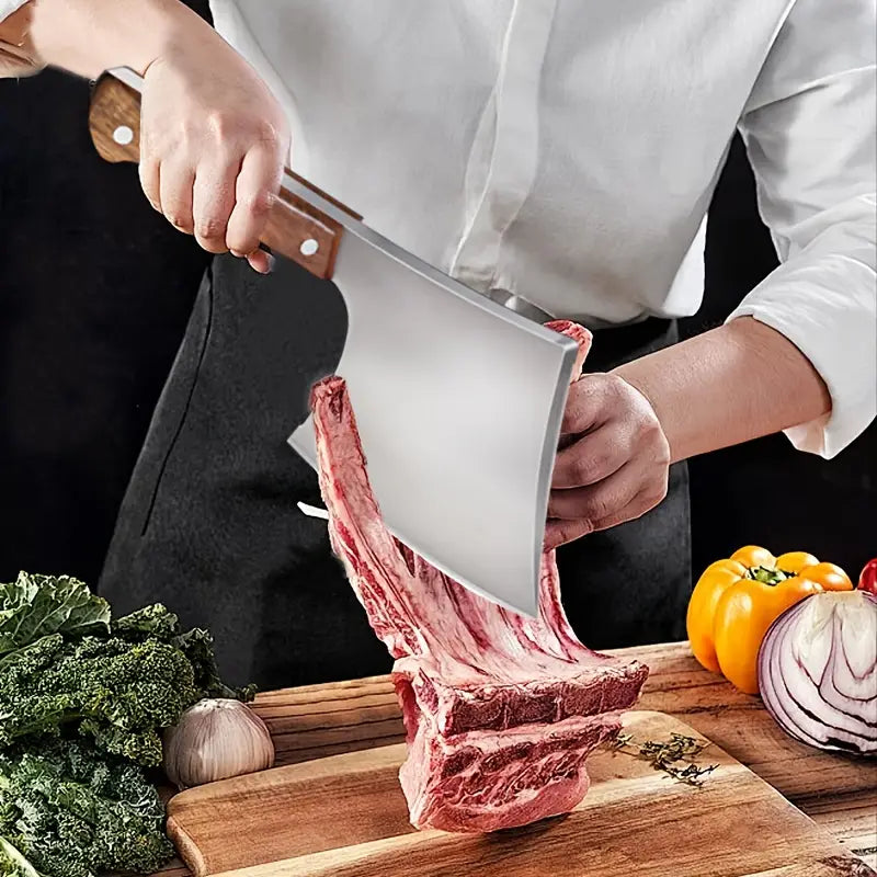 This specialized heavy-duty bone cutting knife and axe are designed for commercial and household use, ideal for cutting thick bones with ease. Perfect for butchers, chefs, and home cooks, it features a robust design that efficiently handles big bones, making it perfect for tasks like pig killing and bone chopping. Durable and sharp, this tool ensures precise cuts, offering both comfort and safety during use.