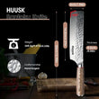 Huusk Professional Japanese Kitchen Knife Set – Meat Cleaver, Nakiri & Boning Knives with Ergonomic Pakkawood Handle