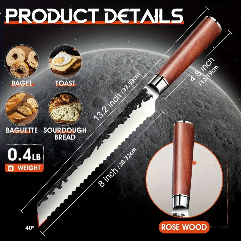 Japanese 9.7 Inch & 8 Inch Serrated Bread Knife Set – Ideal Father’s Day Gift for Baking Lovers
